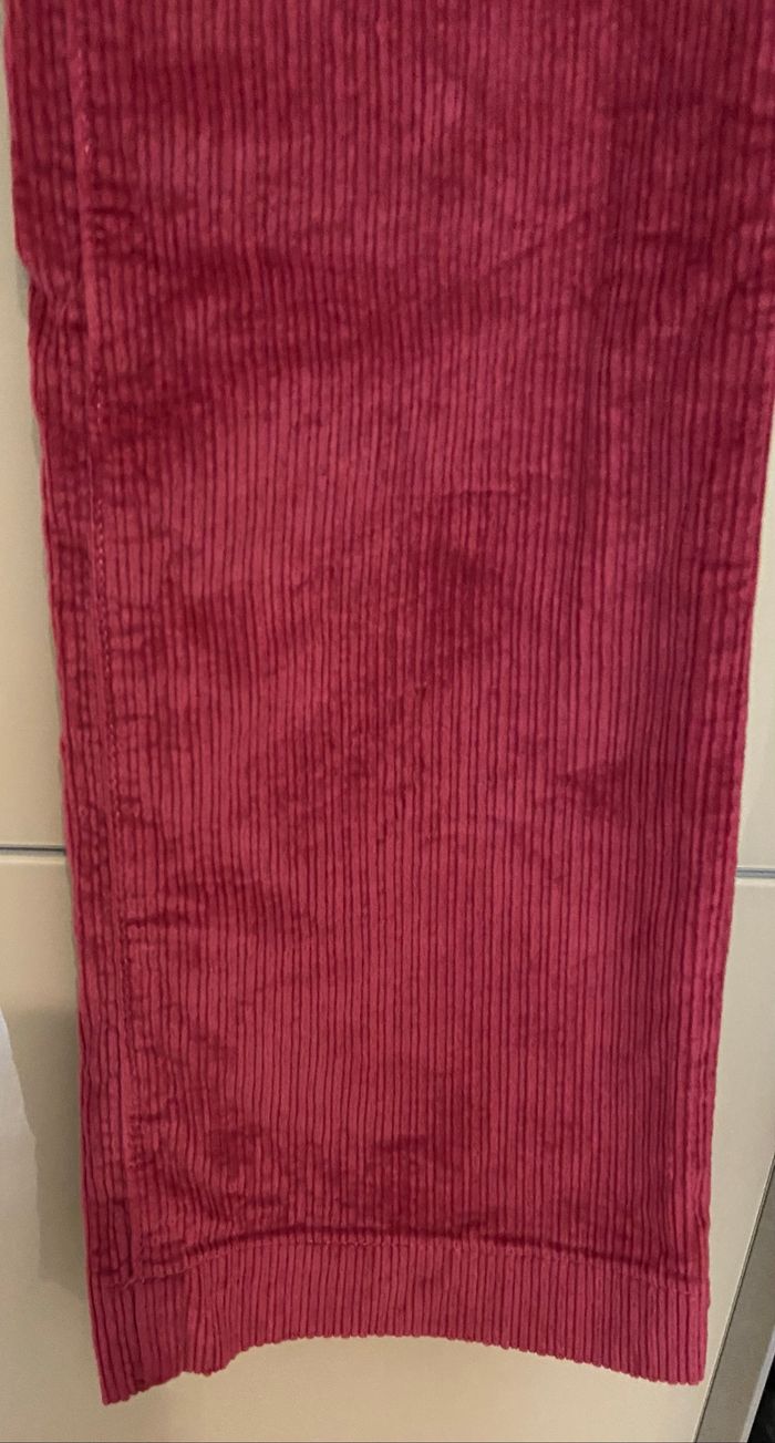pantalon côtelé en velours rose framboise avec 2 poches latérales. L'article est en très bon état. MESURES : longueur 110cm, largeur 34 cm, largeur cheville 22 cm 98 % coton 2 % élasthanne lavage en machine