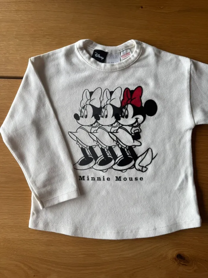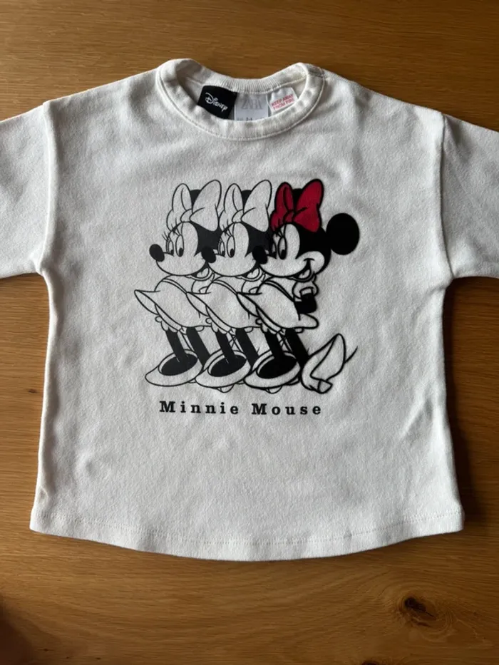 Teeshirt blanc en coton épais à manches longues avec Minnie Mouse de marque Zara. Taille 4 Ans 3 belles Minnie Mouse à l’avant avec la dernière en velours. Super tombé grâce au coton épais. Il est en excellent état 🤍 ❤️ 🖤. 🛍️ N'hésitez pas à jeter un œil à mon dressing et composer votre lot de nombreux autres articles vous y attendent en fille 4 Ans. #fille4ans_lapetitemarie #lapetitemarie
