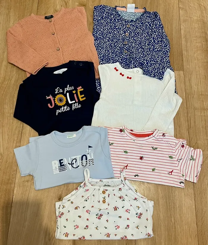 Lot hauts fille en 9 mois Certains sont neufs, le reste est en parfait état. Orchestra, Benetton, Vertbaudet…