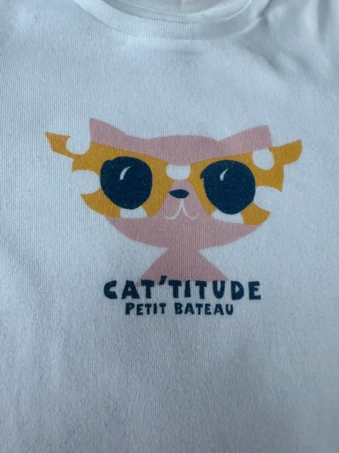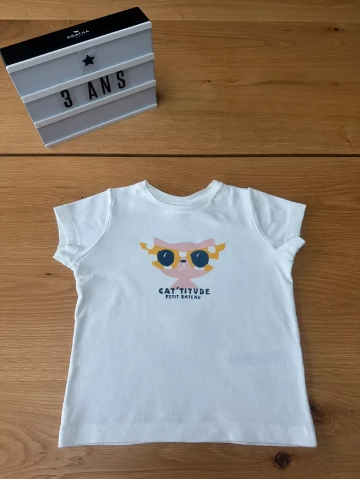 Teeshirt à manches courtes avec petit chat 🐱 à lunettes 👓 de marque Petit Bateau. Taille 3 Ans Il est blanc et en 100% coton. Peut être utilisé comme petit teeshirt ou comme maillot de corps également 🤍. Il est en excellent état. 🛍️ N'hésitez pas à jeter un œil à mon dressing et composer votre lot de nombreux autres articles vous y attendent en fille 3/4 ans. 🎉 #fille3ans_lapetitemarie #fille4ans_lapetitemarie #lapetitemarie