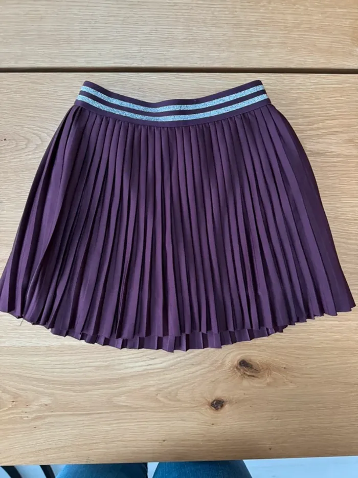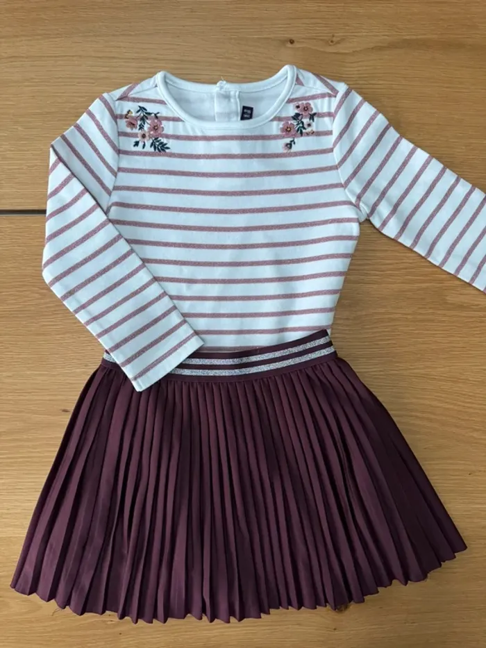 Tenue 2 pièces, jupe plissée bordeaux et marinière blanche/rose irisé - Taille 3 Ans - photo numéro 1