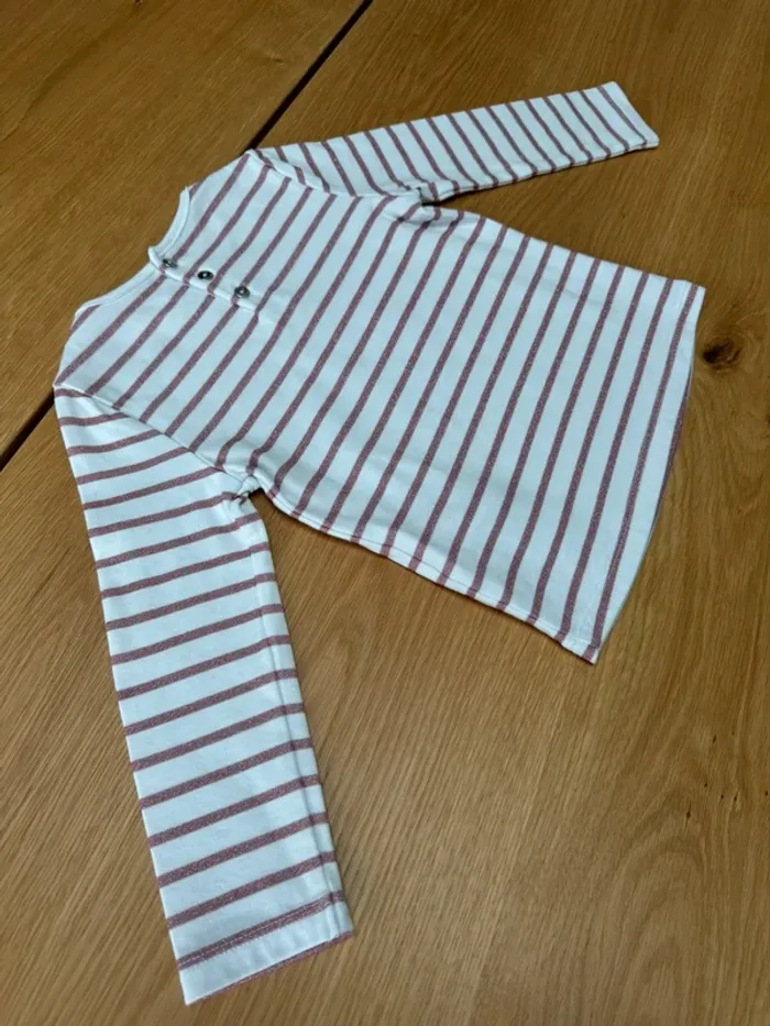 Tenue 2 pièces, jupe plissée bordeaux et marinière blanche/rose irisé - Taille 3 Ans - photo numéro 8