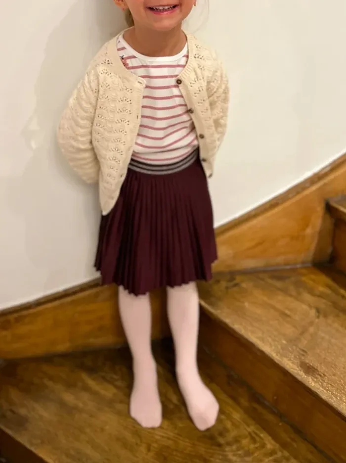 Tenue 2 pièces, jupe plissée bordeaux et marinière blanche/rose irisé - Taille 3 Ans - photo numéro 17