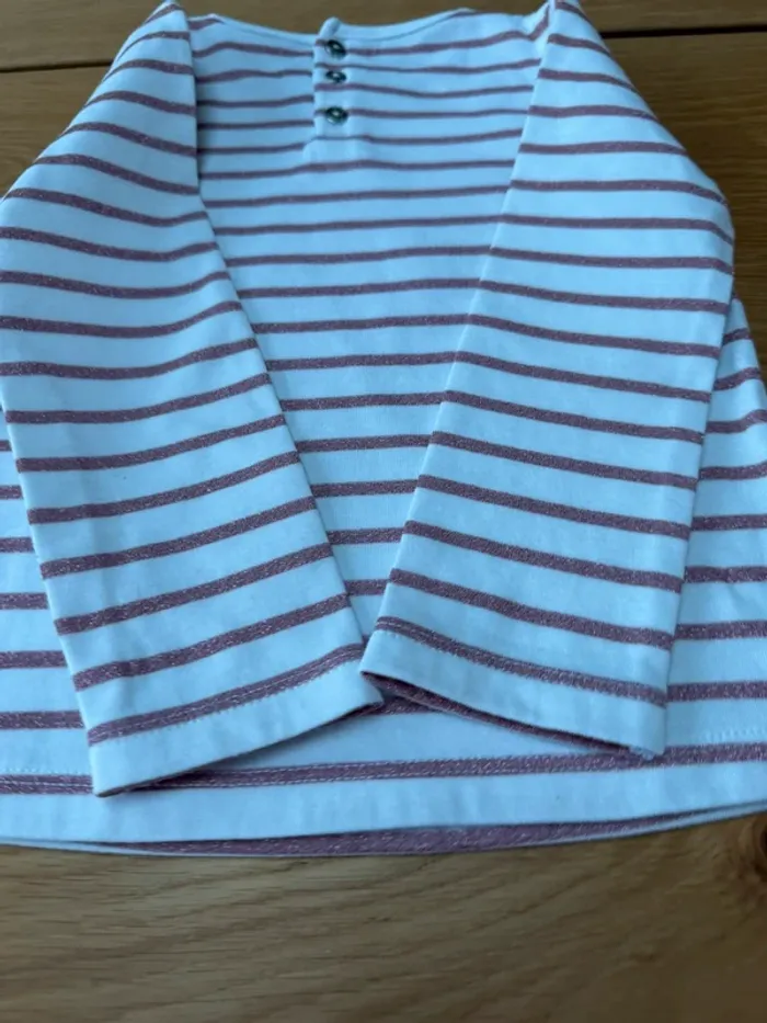 Tenue 2 pièces, jupe plissée bordeaux et marinière blanche/rose irisé - Taille 3 Ans - photo numéro 10