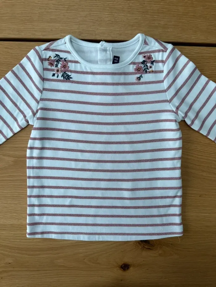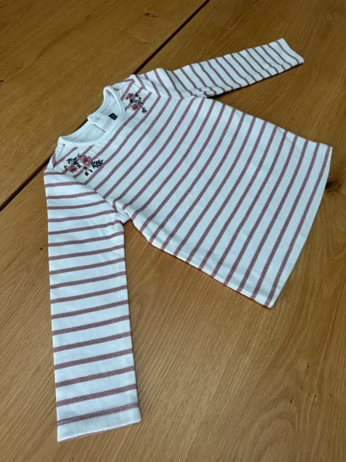 Tenue 2 pièces, jupe plissée bordeaux et marinière blanche/rose irisé - Taille 3 Ans - photo numéro 9