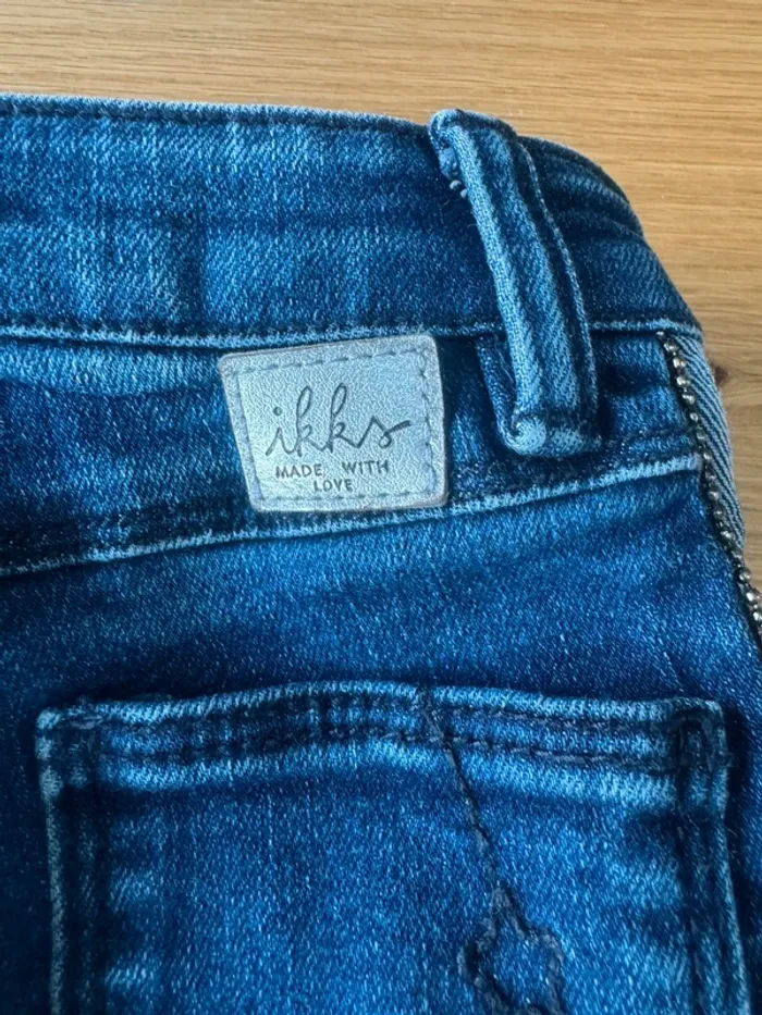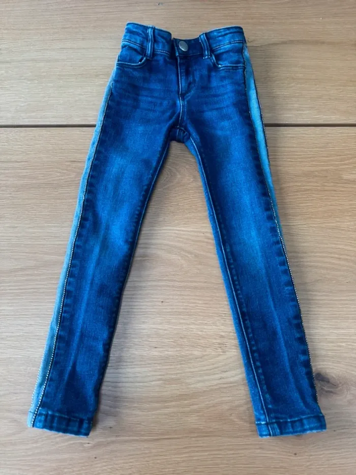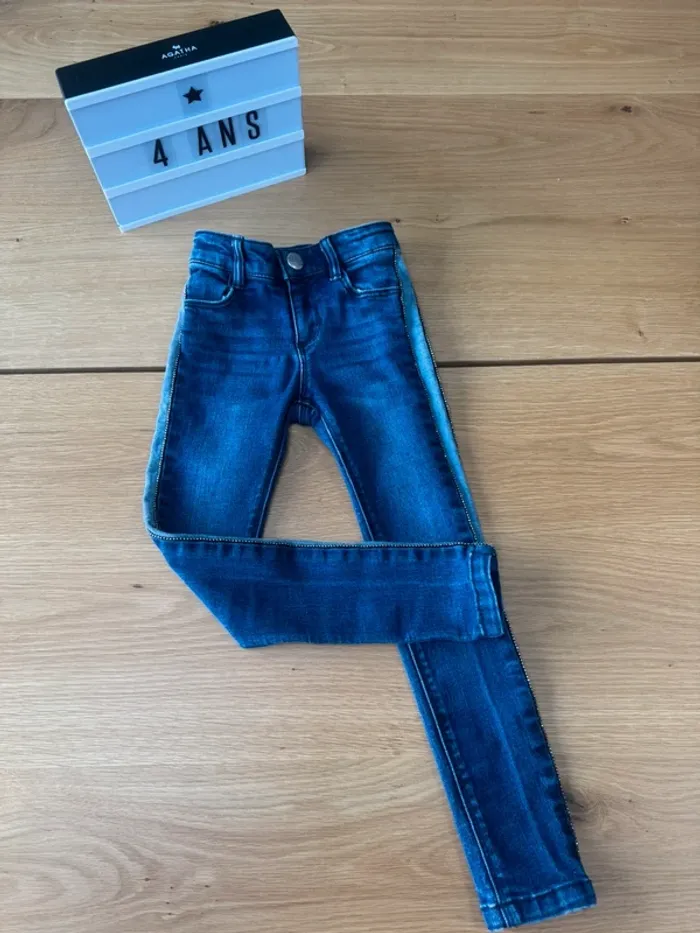 Jeans bleu marine coupe skinny fit de marque IKKS. Taille 4 Ans Coupe ajustée « skinny fit » avec ceinture élastique réglable à la taille. Bandes bleu clair sur le côté avec des perles argentées sur les rebords. Léger délavage. Il a été porté mais reste en très bon état 🩵 💙. Super pratique au quotidien. 🛍️ N'hésitez pas à jeter un œil à mon dressing et composer votre lot de nombreux autres articles vous y attendent en fille 3/4 ans. 🎉 #fille3ans_lapetitemarie #fille4ans_lapetitemarie #lapetitemarie