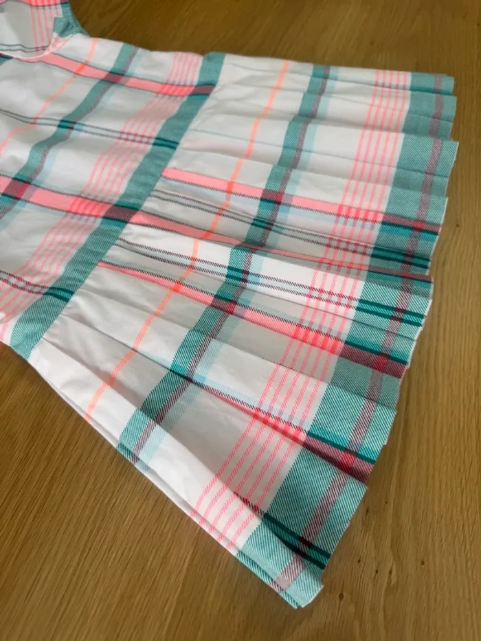 Robe MC plissée en tartan, col Claudine tons rose pâle, vert et fluo - Taille 36 Mois/ 3 Ans