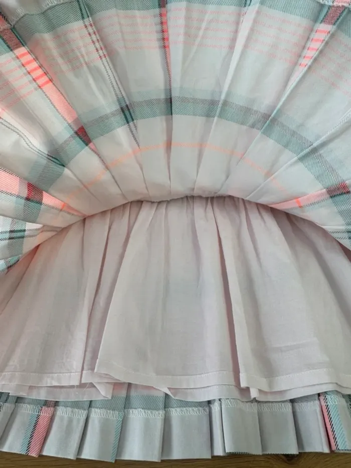 Robe MC plissée en tartan, col Claudine tons rose pâle, vert et fluo - Taille 36 Mois/ 3 Ans - photo numéro 8