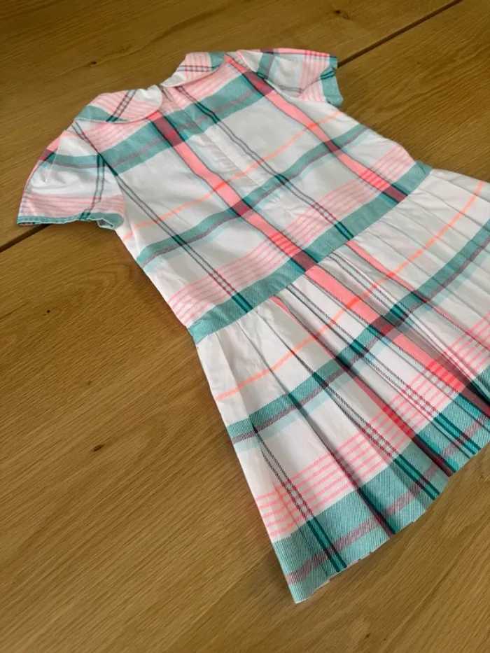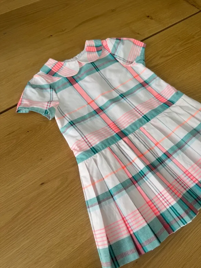 Robe MC plissée en tartan, col Claudine tons rose pâle, vert et fluo - Taille 36 Mois/ 3 Ans - photo numéro 1