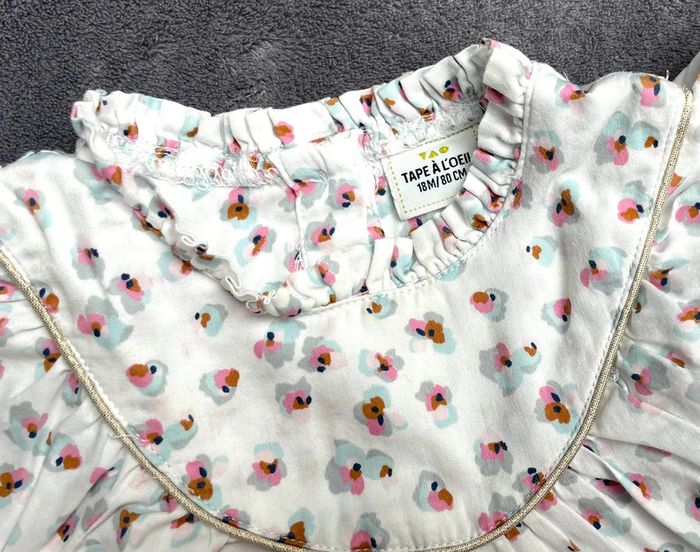 Vends cette très jolie blouse à manches courtes pour bébé fille, comme neuve. Taille : 18 mois Marque: Tape à l'œil Achetez en lot dans mon dressing pour activer la réduction automatique et rentabiliser vos frais de port 😉