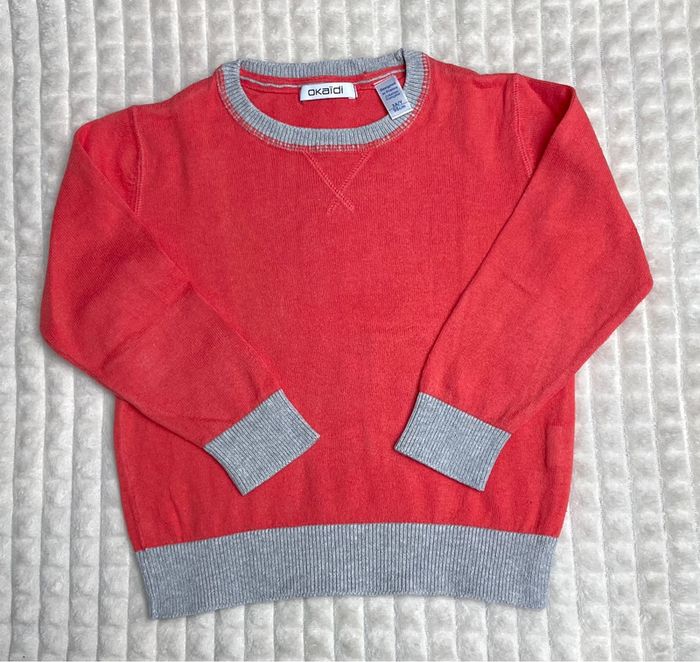 Vends cet adorable pull pour garçon en excellent état. Couleur corail. Taille : 3 ans Marque : Okaidi Achetez en lot dans mon dressing pour activer la réduction automatique et rentabiliser vos frais de port 😉