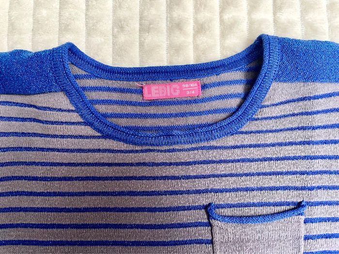 Vends ce joli pull pour fille gris et bleu pailleté, en excellent état. Marque : Le Big Taille : 4 ans Achetez en lot dans mon dressing pour activer la réduction automatique et rentabiliser vos frais de port 😉
