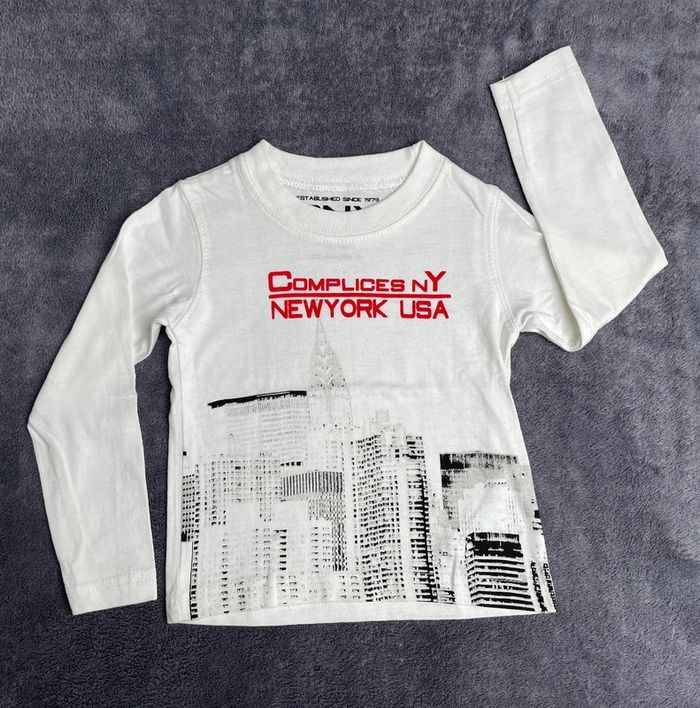 Vends ce tee-shirt à manches longues en parfait état (comme neuf) Thème : New York Taille : 2 ans / 24 mois Marque : Complice Achetez en lot dans mon dressing pour activer la réduction automatique et rentabiliser vos frais de port 😉