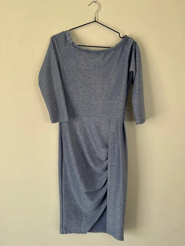 👗Robe - bleu argenté avec des paillettes- très bon état- sans marque - photo numéro 1