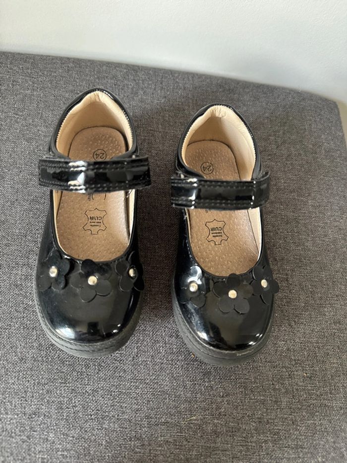 🥿Jolie chaussures à scratch tous les jours ou cérémonie fille en cuir - taille 24 - FPC- bon état - photo numéro 2