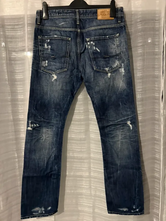 Jeans troué marine de marque Jack and Jones taille américaine 32/34 #jackandjones #jackandjoneshomme #jeans #jeanstroué #coupedroite