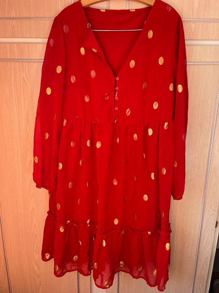 Robe rouge et dorée fluide taille L - photo numéro 1