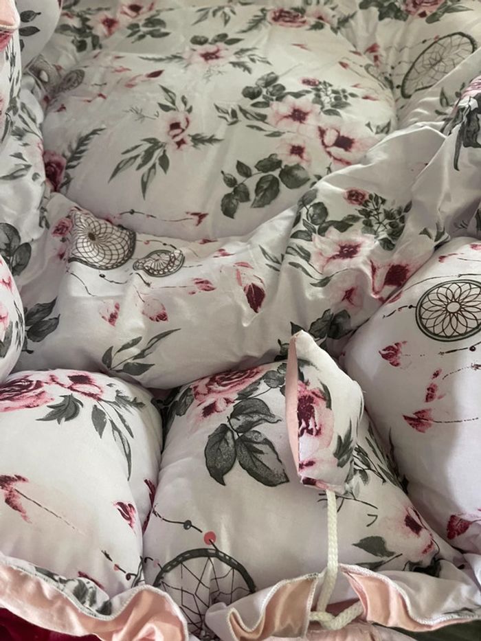 Jamais utilisé ni lavé il est entièrement NEUF. Attrapes rêves et roses très moelleux, on peut aussi l’utiliser comme couchage d’appoint au sol.