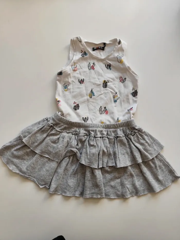 Motif cactus Effet t-shirt+ jupe à volants #Justinersn_fille_3ans