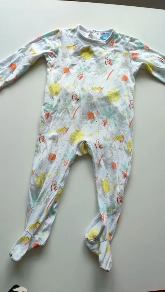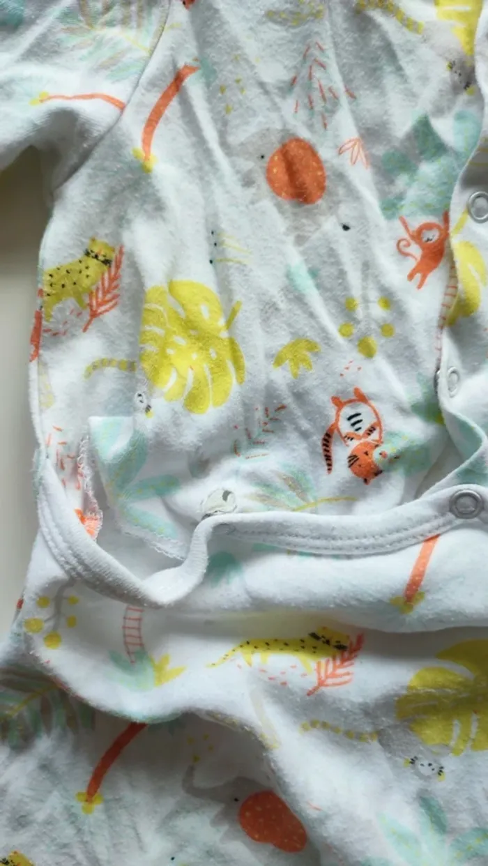 Pyjama léger, taille petit. Correspond plus à du 18 mois. Motif : Animaux, jungle 🐆🐒🐅🐘🌿 Une pression abîmée (cf 2eme photo) #Justinersn_garcon_18mois #Justinersn_garcon_24mois