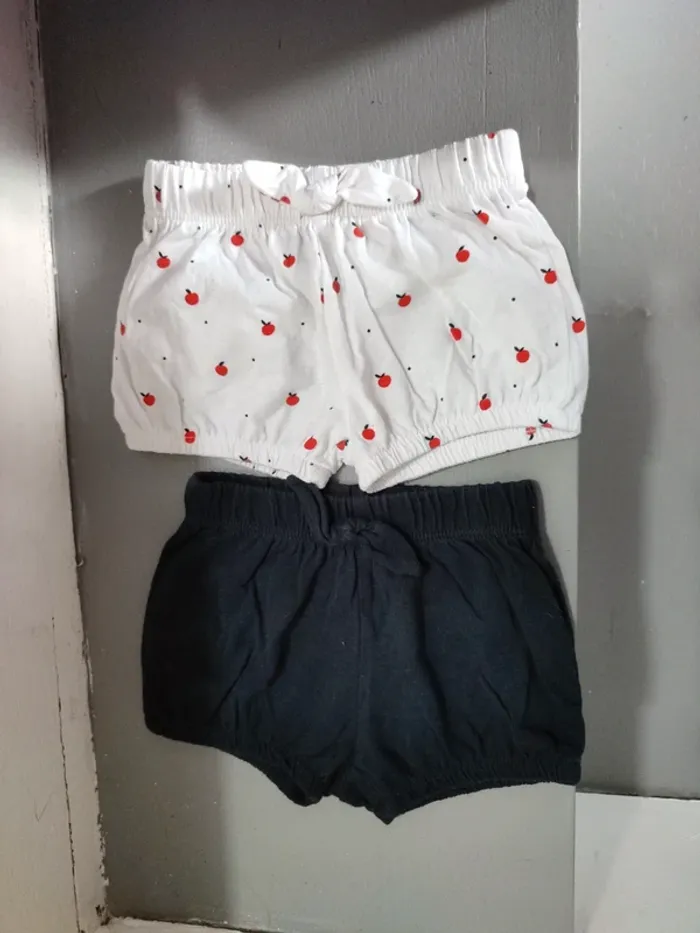 Lot 2 shorts en coton 1 motif pommes 1 uni bleu marine #Justinersn_fille_3mois