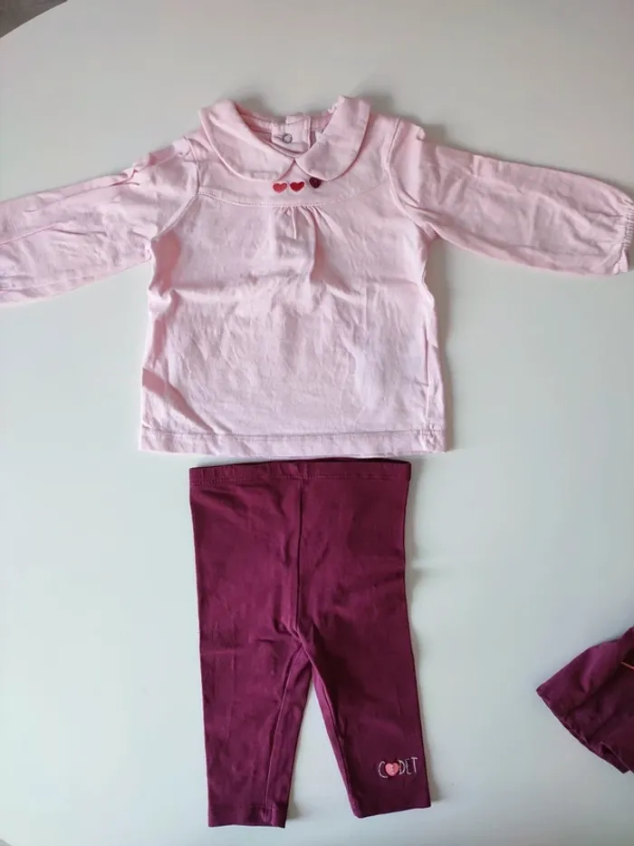 T-shirt manches longues + robe manches courtes + leggings Couleur prune et rose pâle #Justinersn_fille_6mois