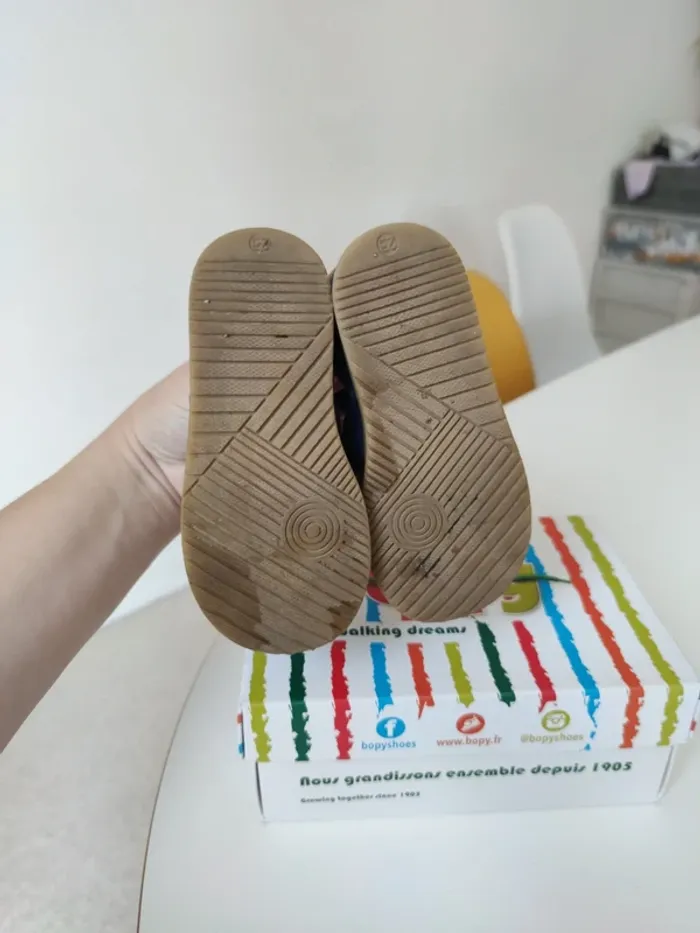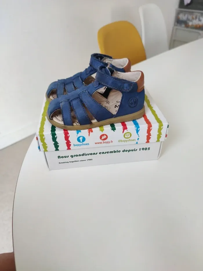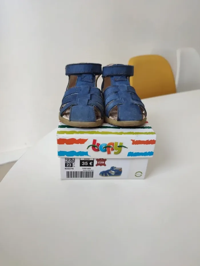 Dessus, double et semelle intérieure en cuir Portées mais encore en bon état, mérite juste un bon nettoyage (je n'ai pas les produits qu'il faut pour entretenir le daim donc je n'ai pas pu le faire) Seul défaut à voir sur la dernière photo : la couture de la lanière un peu déchirée qu'il faudrait recoudre #Justinersn_garcon_chaussures #Justinersn_garcon_2ans #Justinersn_garcon_3ans