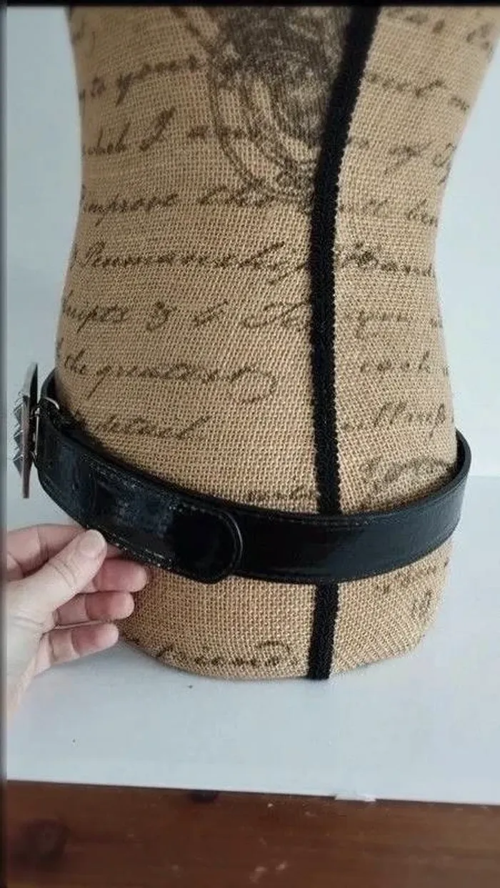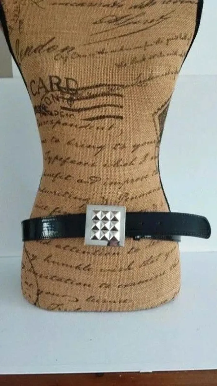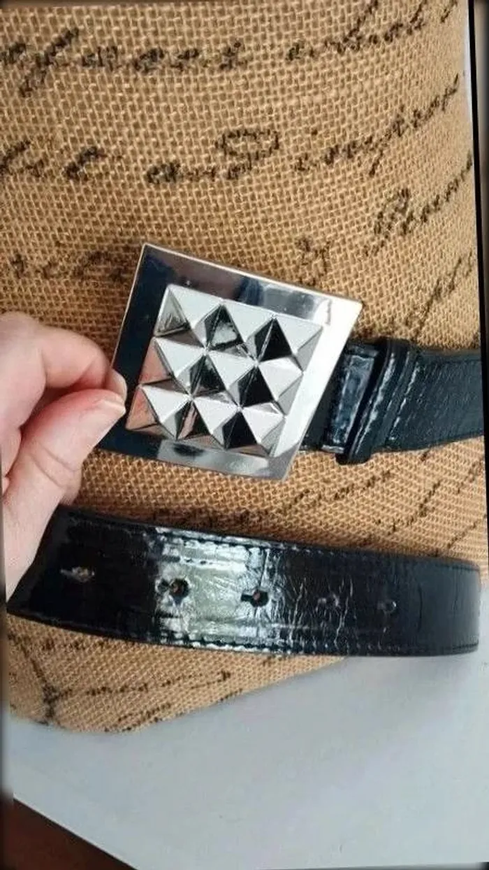 Ceinture noir boucle carré argenté 85 cm - photo numéro 7