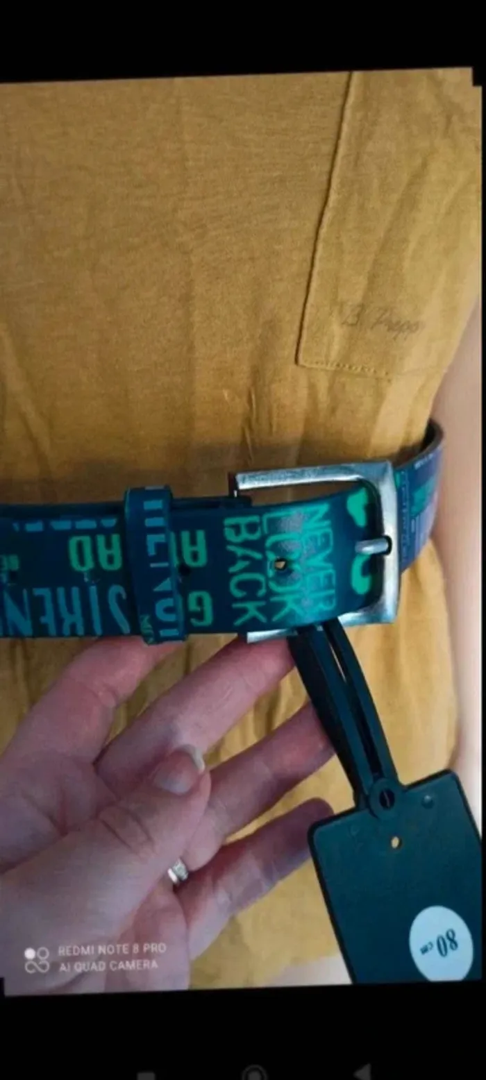 Ceinture  bleu marine  avec  écritures grise  et  verte  80 cm - photo numéro 4