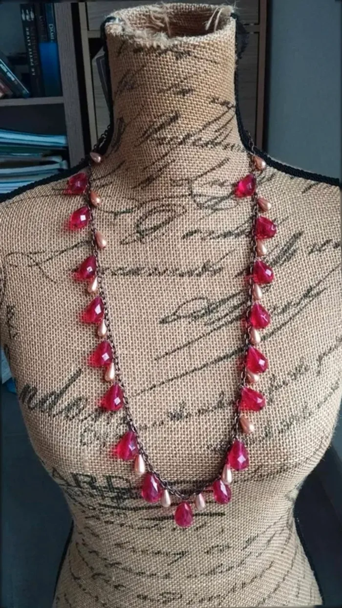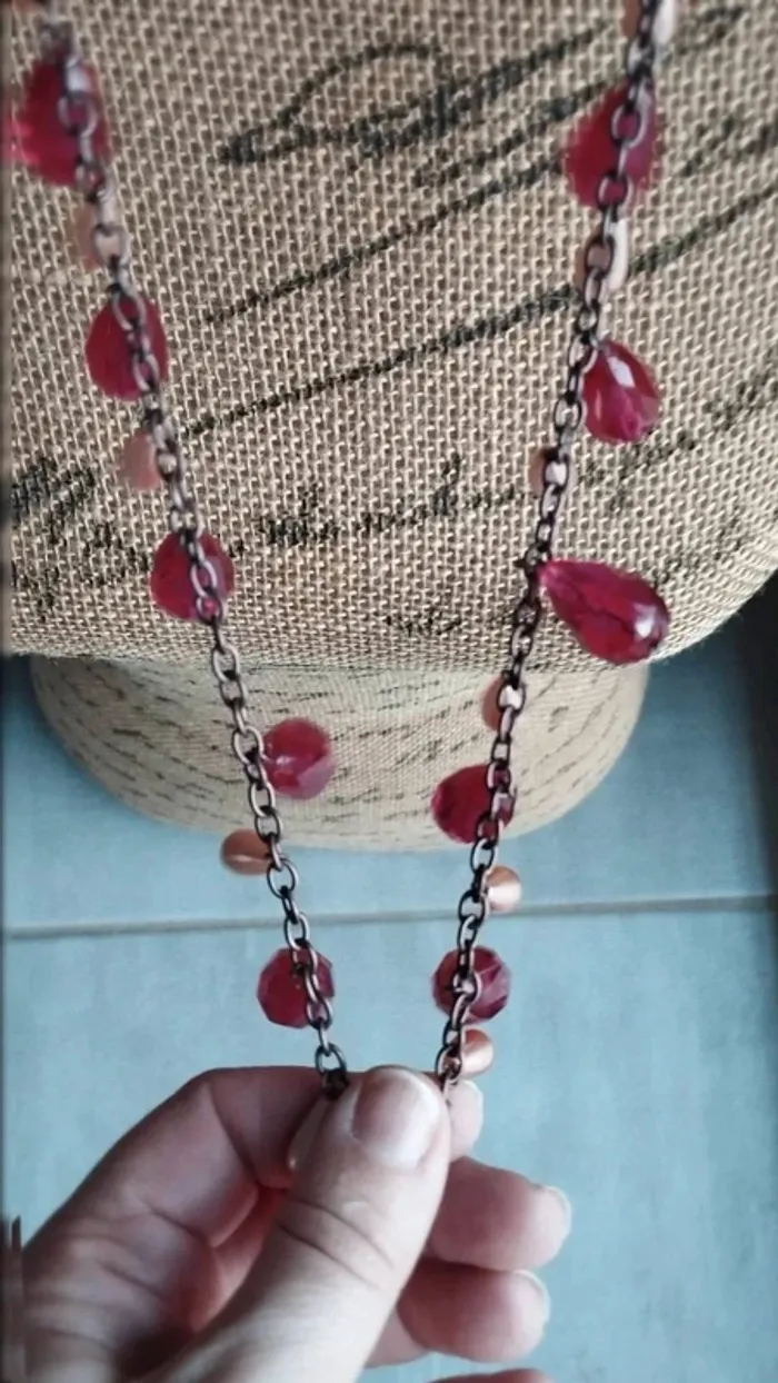 Sautoir  collier  perles rouge marron - photo numéro 2