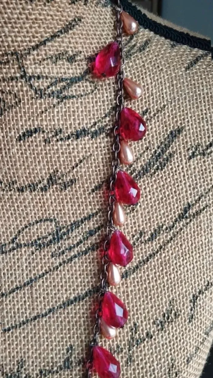 Sautoir  collier  perles rouge marron - photo numéro 6