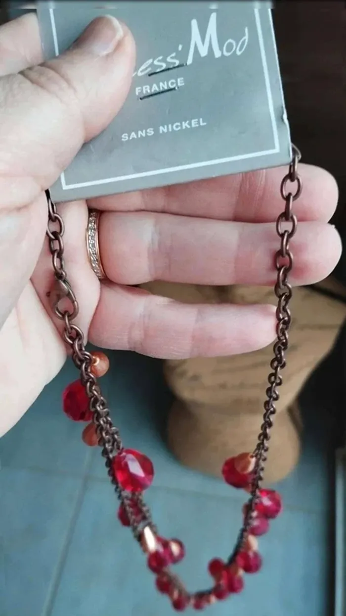 Sautoir  collier  perles rouge marron - photo numéro 5
