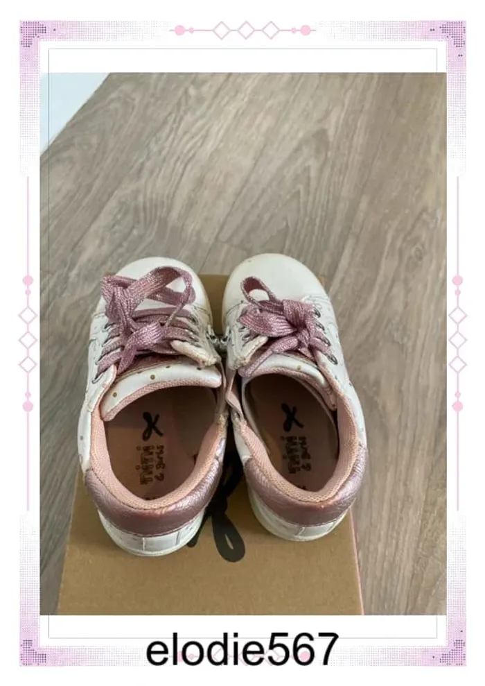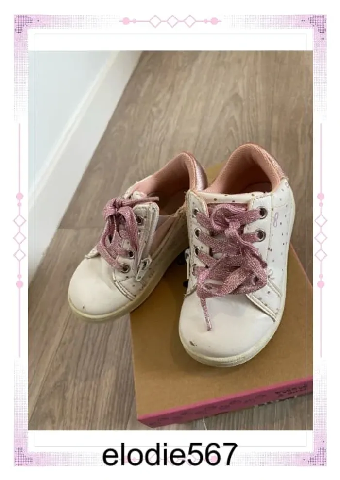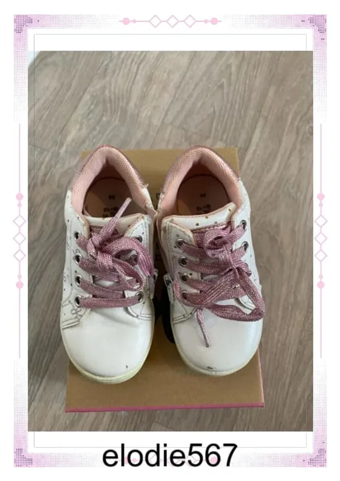Chaussea Nini & girls Blanc Rose Paillettes Noeuds Lacets et fermeture Petit défaut sur le bout (photos) #elodie567_24moisfille #elodie567_36moisfille #elodie567_3ansfille #elodie567_chaussures