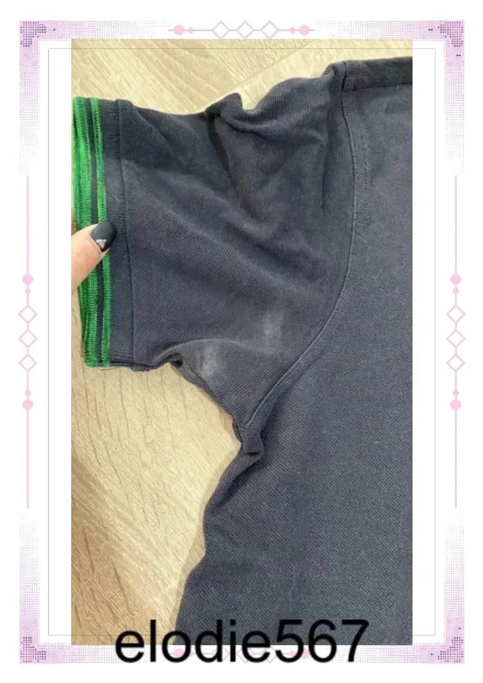 Polo noir liseré vert La couleur noire est un peu délavée Et blanchi sous les bras #elodie567_polohomme #polo #polohomme #polofredperry #fredperry