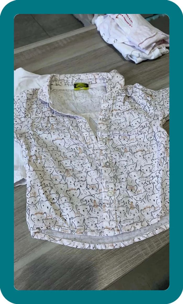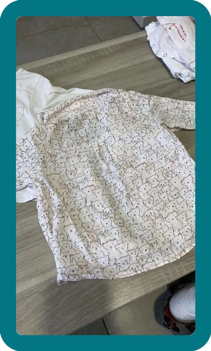 Tape à l’œil 9 mois T-shirt blanc Chemise blanches avec motifs chat #elodie567_9moisfille #tao #tapealoeil #9mois #chats