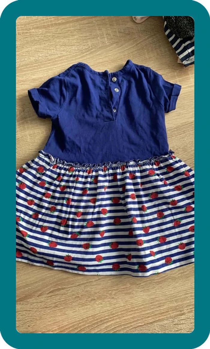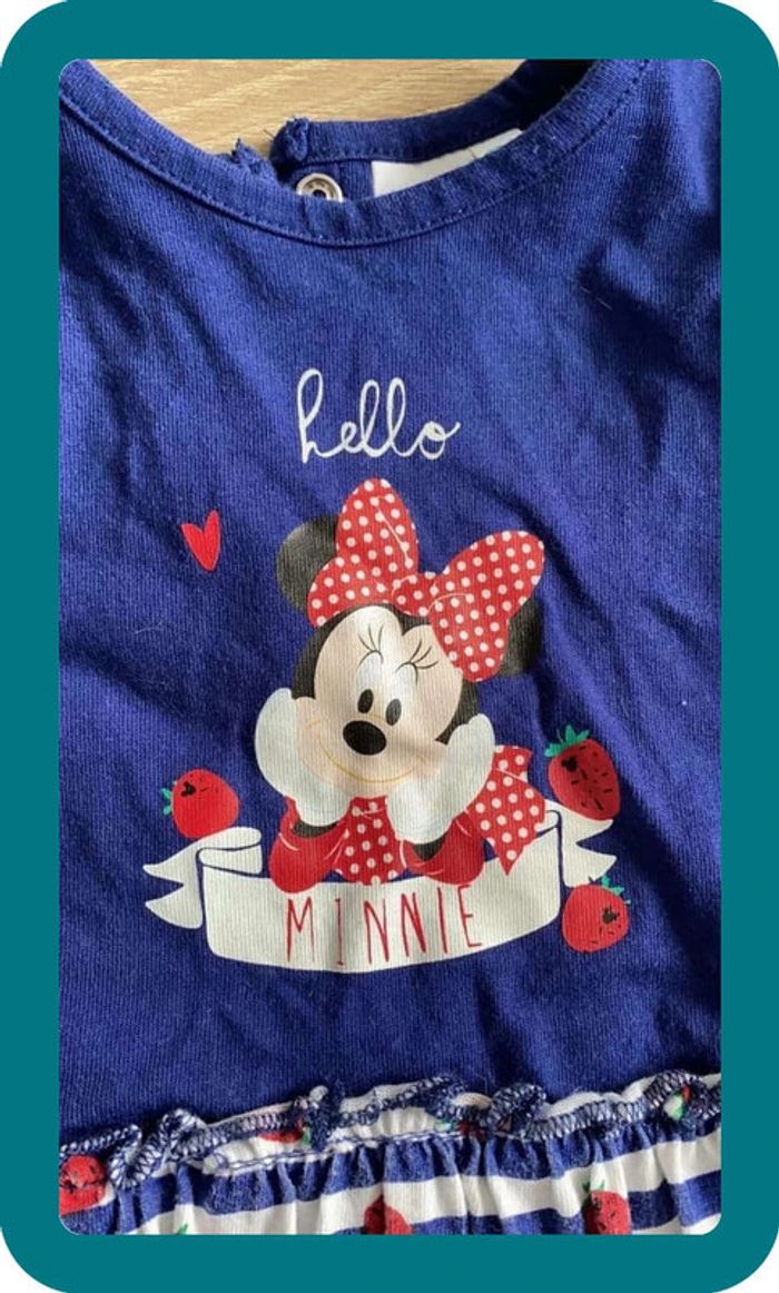 Robe style marinière Minnie et motifs fraises Bleu marine et blanc Disney 12/18 mois #elodie567_12moisfille #elodie567_18moisfille #robe #minnie #disney