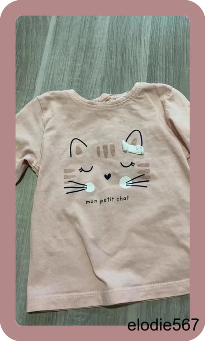 Blanc / crème kimadi Vert d’eau Tex Rose motif chat gémo #elodie567_12moisfille #tshirt #tshirtmancheslongues #kimadi #tex #gémo
