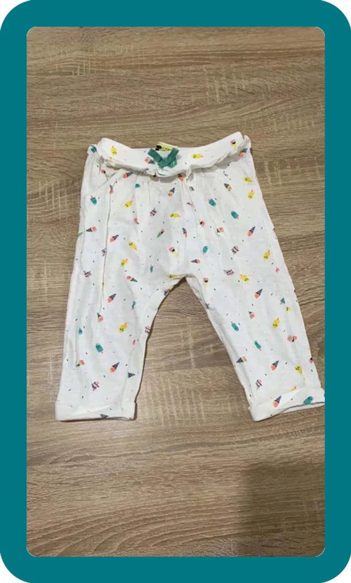 Pantalon fin / léger / fluide Tape à l’œil 12 mois Blanc / crème avec motifs glaces #elodie567_12moisfille #tao #tapealoeil #ete #leger #fluide