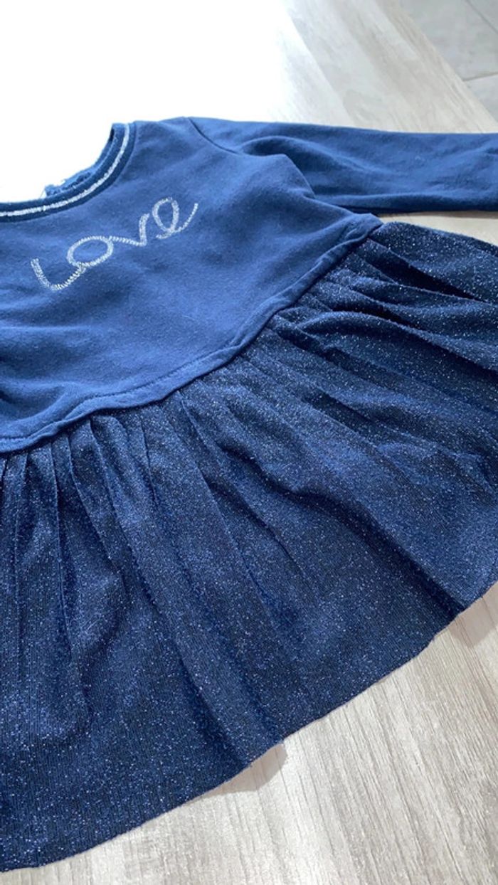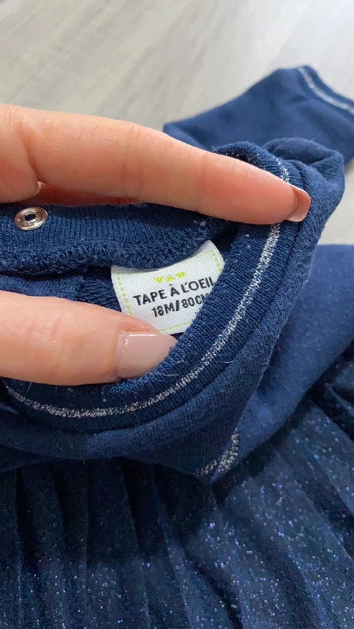 Bleu marine Le bas est pailleté Tape à l’œil 18 mois Quelques bouloches au col et poignets #elodie567_18moisfille #robe #robetao #18mois #tapealoeil