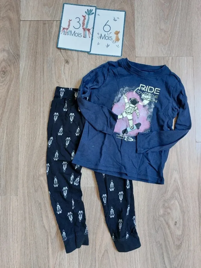 Taille 95-101 cm Motif fusée Haut bleu marine et bas noir Très bon état #mooneygarçon36mois