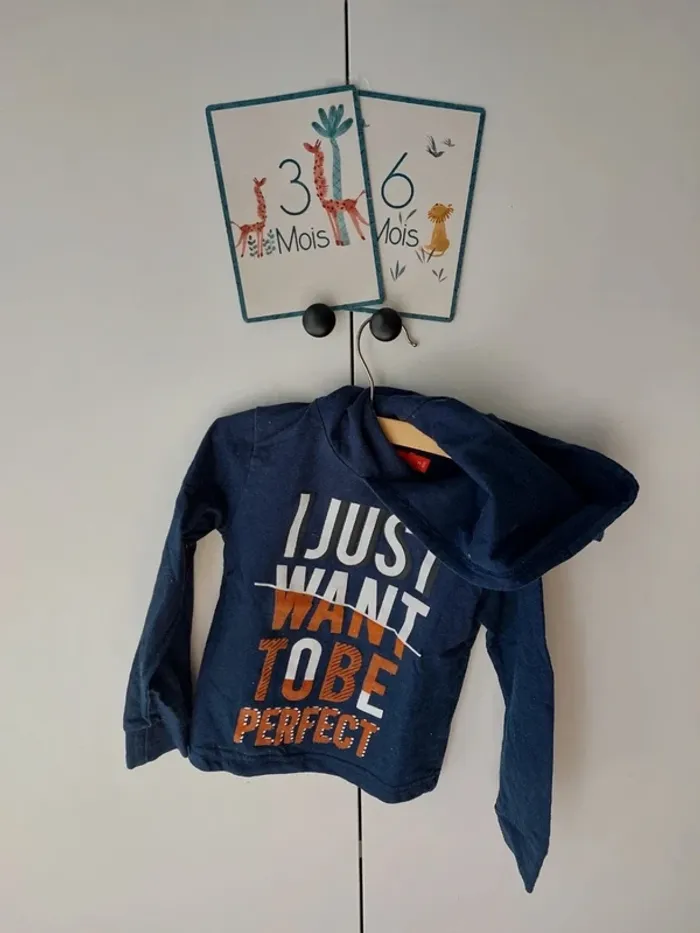Sweat à capuche avec message Porté mais encore en très bon état #mooneygarçon36mois