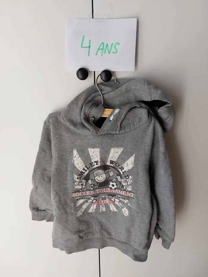 Sweat à capuche gris Smiley 4 ans - photo numéro 1