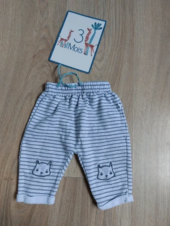 Joli jogging rayé avec motif chat Très bon état #mooneygarçon3mois