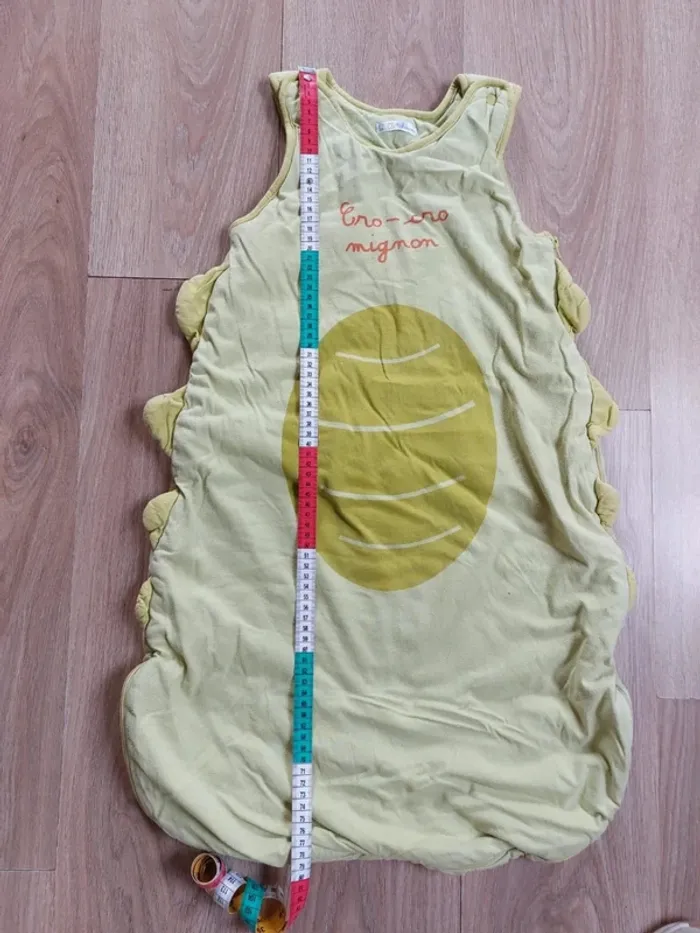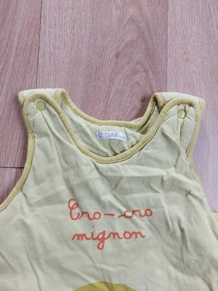 Longueur 79 cm Thème dinosaure avec inscription cro cro mignon Ouverture zip latéral et pressions épaules Pressions au dos pour la raccourcir Couleur plus joli que sur photo Un peu épaisse, idéale mi saison approche de l'hiver #mooneygarçon18mois #mooneygarçon24mois #mooneygarçon12mois #mooneygarçon6mois #mooneygarçon9mois