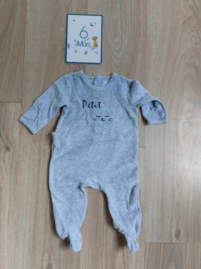 Pyjama en velours gris Kimadi 6 mois - photo numéro 1