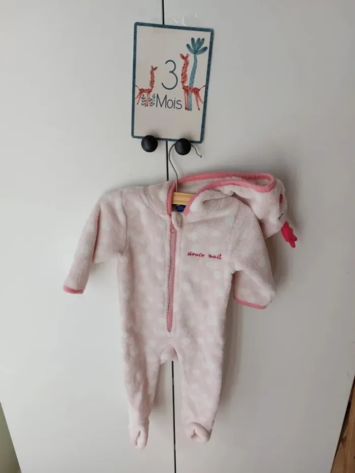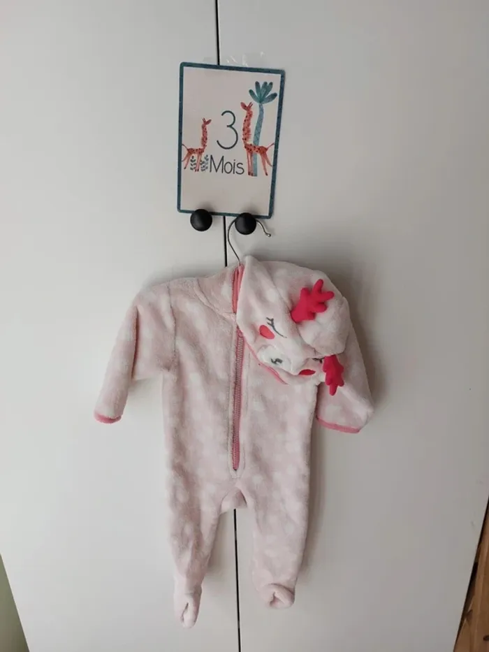 Combinaison/surpyjama en polaire Douce et chaude Capuche avec animal Comme neuve #mooneyfille3mois