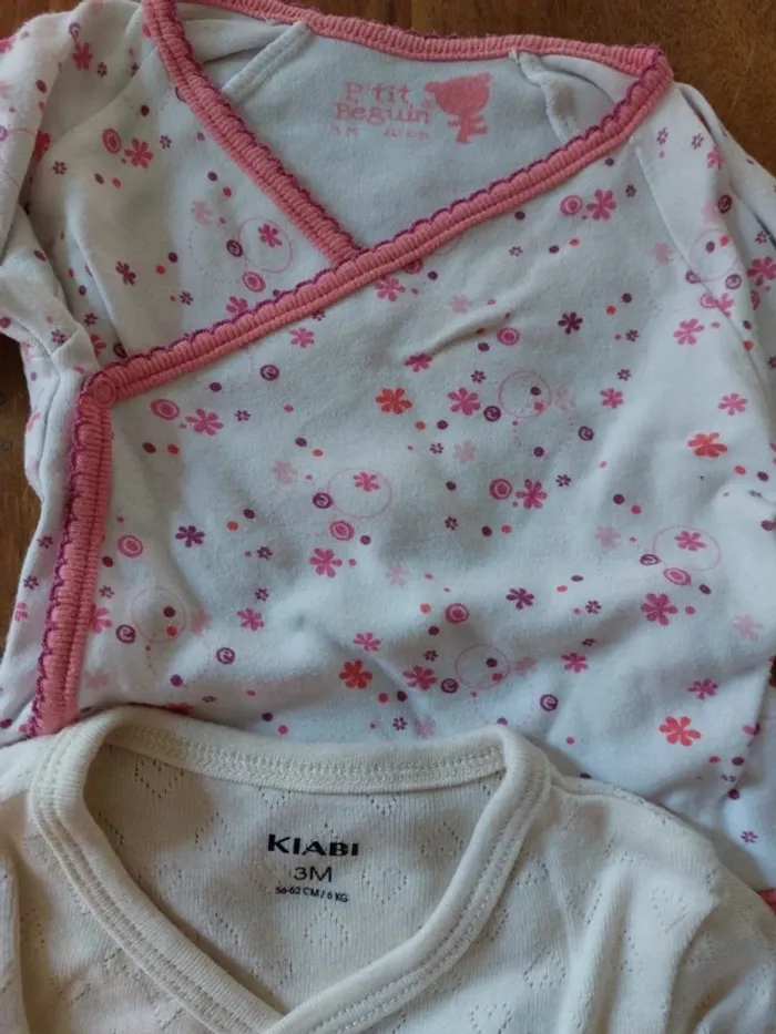 1 kiabi crème avec cœurs ajourés entrejambe réglable 1 petit béguin Très bon état #mooneyfille3mois