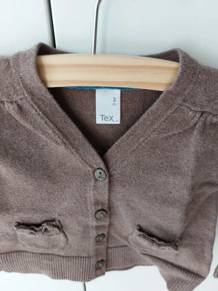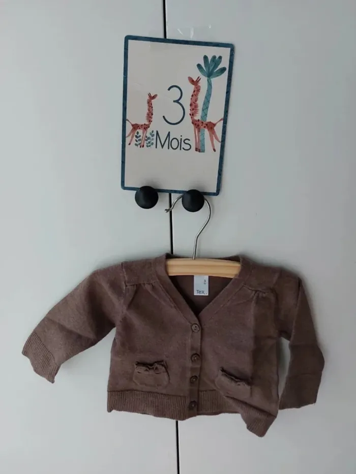 Gilet brun à col V Détails sur les poches Très bon état #mooneyfille3mois