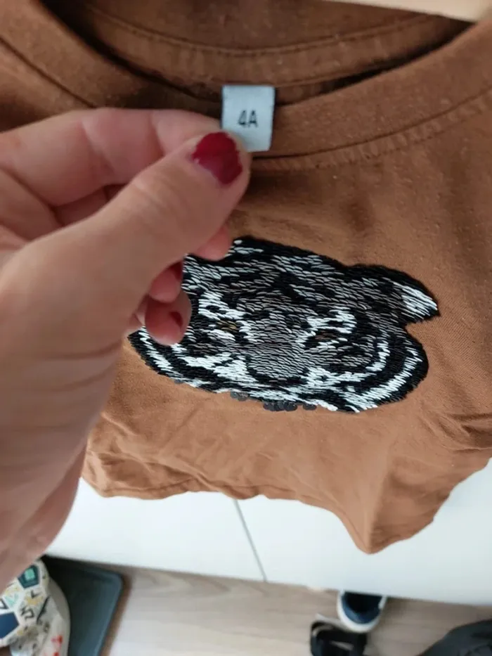 T-shirt manches courtes motif tigre en sequins Très bon état #mooneygarçon4ans