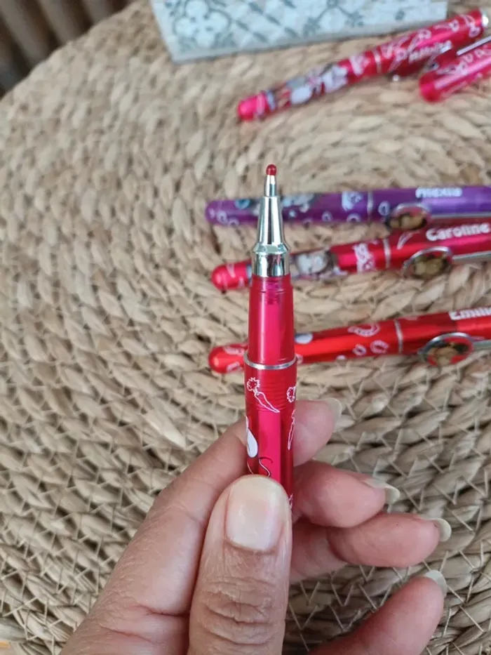 🖊️Stylo bille neuf fonctionnel. La bille est encore en place. L'encre est de couleur noire. Neuf jamais utilisé. Les prénoms disponibles : 🌹Stylo bille rouge Héloïse ❣️Stylo bille rouge Charline 🪻Stylo bille violet Alexia (vendu) 🌹Stylo bille rouge Caroline (vendu) 🌹Stylo bille rouge Emilie(vendu) Contactez-moi pour choisir votre prénom 😜 Pour plus de renseignements n'hésitez pas 😉